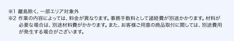 用意の商品取付に関しては、 別途費用が発生する場合がございま