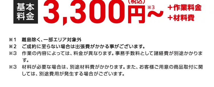 ※材料が必要な場合は、別途材料費がかかります。 また、 お客様ご